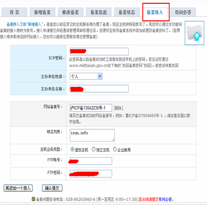 第一步:登陆 beian.vhostgo.com 在线填写转入备案信息